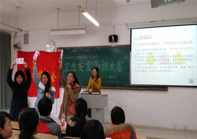 公寓安全一直是学校老生常谈的主题,更是楼栋工作的重中之重,而生活卫生常识是健康生活的保证。为了提高同学们公寓安全意识,增强同学们对生活卫生知识的了解,创建安全和谐的北六公寓环境,北六楼管会于2014年11月28日下午4点成功举行“北六公寓安全卫生知识竞赛活动”。到场的嘉宾有太阳成集团tyc122cc党总支雷菁副书记、公寓管理科科长冯湛老师、北六楼栋管理主任郝颖老师、北六宿管阿姨冯祖惠、大自委公寓公寓社区中心宣传策划部的2位干部。