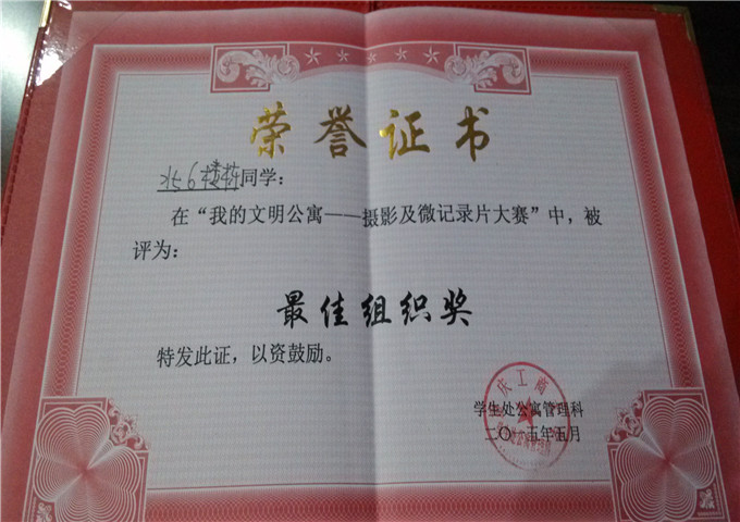 122cc太阳集成游戏公寓社区中心主办、各楼管会承办的2014-2015学年公寓特色活动“我的文明公寓-摄影及微记录大赛”经历了从初选、网上投票、复选等环节,近日公布了比赛最终结果并对获奖的楼栋进行了颁奖。颁奖晚会于2015年5月22日晚7点在田家炳书院408报告厅准时举行,北六楼管会的指导老师、干部们参加了此次晚会。在全校38个楼栋、34个参赛纪录片作品、500张摄影照片的大赛中,北6在此次“我的文明公寓—摄影及微记录片大赛”中被评为“最佳组织奖”。