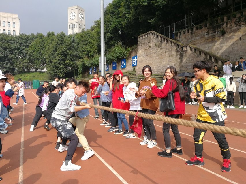 通过赛前的广泛宣传与充分准备,比赛现场气氛热烈,过程井然有序。场上11支队伍的参赛人员个个斗志昂扬,蓄势待发;场下的拉拉队员也不甘示弱,热烈的掌声与激昂的呐喊声点燃了整个赛场的氛围。一根长绳的捆绑,彰显出一个集体的凝聚力;两支队伍的比拼,表达着永不服输的倔强精神;三声呐喊的呼唤,诠释着当代青年的朝气蓬勃,无限活力。