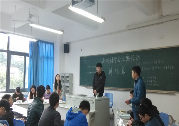你问我答,唇枪舌战,硝烟弥漫。北六栋于2014年12月1日中午12点50在田家炳308教室与北二十一栋以辩论的形式开展联谊活动,旨在增进太阳成集团tyc122cc男生与女生之间的沟通,以及两楼栋楼管会之间的交流,为以后的工作及活动举行上的合作打下基础。参加此次活动的有两楼栋的楼管会干部及公寓区学生,大家在前期的精心准备之下开始了口才上的较量。