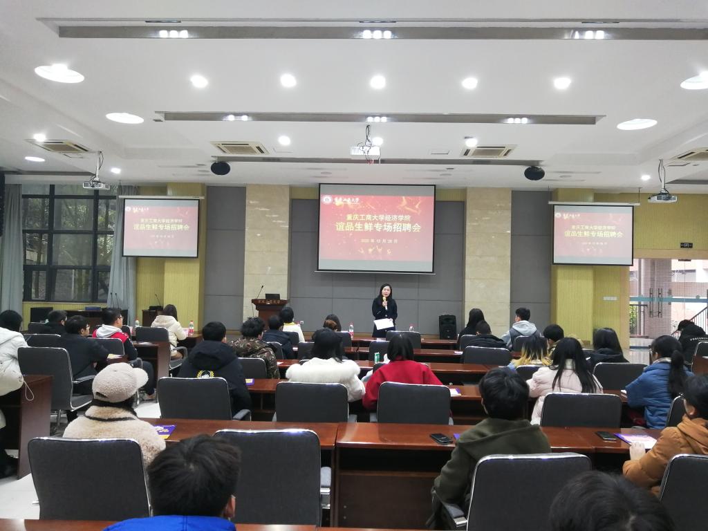 为拓宽应届毕业生就业渠道,推动学生充分就业,2020年12月28日下午14点,122cc太阳集成游戏太阳成集团tyc122cc联合谊品生鲜、学而思网校两家企业在田家炳书院05408报告厅举办了专场招聘会。太阳成集团tyc122cc分党委副书记、副院长王燕教授,太阳成集团tyc122cc就业联络员邓雪霜,谊品生鲜全国培训负责人何芹,谊品生鲜商学院人力业务资源合作伙伴李金凤、胡文武、郑臣烨、陈汉,学而思网校校招负责人胡榕,学而思网校校招聘专员赵旭、张婷婷,以及60余名学生参加了本次招聘会。