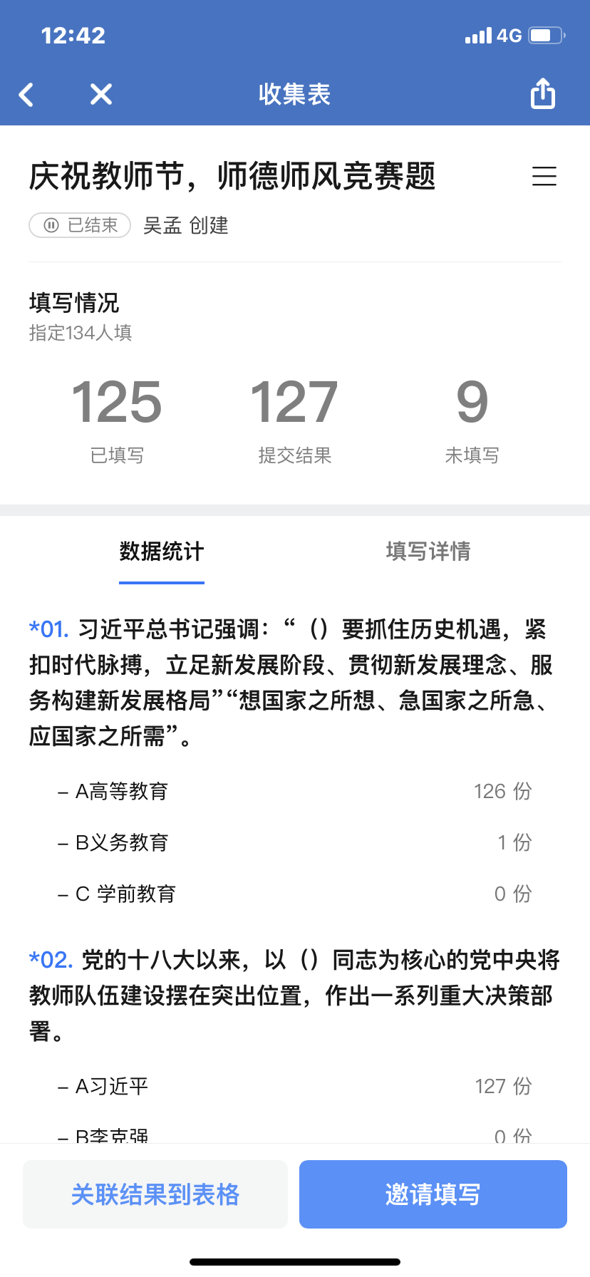 为庆祝第37个教师节,弘扬和推进师德师风建设,经济学院工会与2021年9月6日至9月10日,组织全院教职工进行了“庆祝教师节,弘扬师德师风”知识线上答题活动。本次知识竞赛,以习近平新时代教育改革发展思想为指导,紧紧围绕师德师风建设主题,从法律规定、政策制度、职业操守、价值导向等方面,精心设计了37个有关师德师风的知识问答题,也包含了庆祝第37个教师节的寓意。通过这样的答题活动,让老师们在教师节来临之际,重温了师德师风建设的有关规定和知识,为新的学期各项教学工作认真贯彻师德师风建设精神做好思想准备。本次知识竞赛答题活动,老师们积极踊跃参与,活动共收到全院125名教师的答题,学院工会以老师们的答题先后和对错率来评出一二三四等,发奖品,表达对老师们的节日问候。