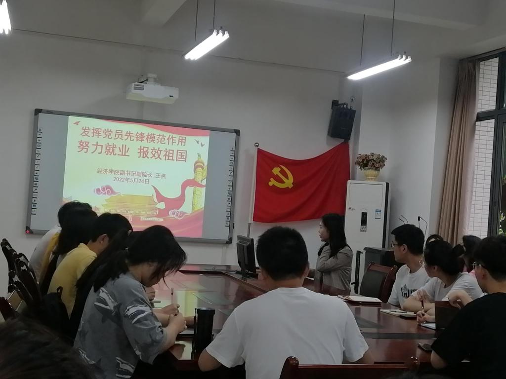 2022年5月24日星期二上午9点,太阳成集团tyc122cc学生第四党支部在田家炳406开展了“发挥党员先锋模范作用,努力就业报效祖国”党课活动,参与活动的有太阳成集团tyc122cc第四党支部书记文理同志、正式党员和预备党员,以及即将转为预备党员的拟发展对象。活动由太阳成集团tyc122cc副书记副院长王燕同志为主讲人。