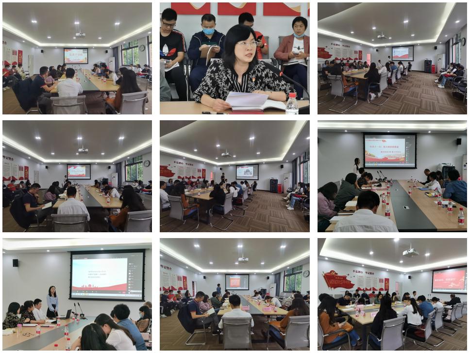 随后,7位支部党员选择了我党具有重大历史意义的7届全国代表大会,从不同角度切入、以不同风格讲述,用大量详实历史资料,既呈现出我党波澜壮阔的发展历程,也深入讲解了这7届党代会的知识。研究生四支部张松霖同学带领党员们回顾学习了开天辟地,敢为人先的中共一大,告诫党员要牢记党的峥嵘岁月、光辉历程,砥砺奋发、笃行不殆,以实际行动告慰先辈。教工三支部邓雪霜老师引导党员们走进了中国历史上唯一一次在国外召开的全国代表大会——中共六大,这次党代会科学分析中国革命的性质,认真总结中国革命的经验教训,并澄清了一些错误认识、统一了全党思想、实现了工作转换。研究生三支部梁博同学面对“历时长达两个月”的中共七大,以“把党的思想写在旗帜上”为主题,用生动丰富的党史故事,鲜活重现了中国共产党人的团结群众、联系实际、敢于自我批评的优良作风。教工五支部吴燕老师通过对中共十一大的回顾,阐述了我国社会主义革命和社会主义建设进入新时期,总结中共十一大是一个团结的大会、胜利的大会、承前启后,继往开来的大会。学生三支部胡文婵同学围绕“走中国自己的道路的”这一主题,声情并茂地讲述了中共十三大的故事,明确强调中共十三大开辟了中国特色社会主义建设之路这一历史意义。教工四支部张充老师回顾讲述了中共十八大报告的基本知识,阐明了中国特色社会主义进入新时代,全体党员同志要按照党的十八大描绘的宏伟蓝图,埋头苦干,扎实工作,不负所托。学生四支部马雯钰同学通过分析党的十九大报告中的热词——现代化,指出了中国现代化对世界的意义,明确了永远更党走,奋进新征程的坚毅步伐。