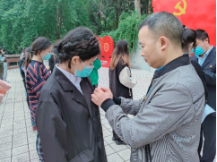 仪式开始,白海龙副书记和各学生支部书记为新党员佩戴党徽。随后,由白海龙副书记领誓,全体新党员紧握右拳,面对党旗庄严宣誓。激昂的宣誓声中,新党员接受了一次全方位的精神洗礼,更加深切地感受到了身为新时代党员的责任和担当,牢固树立对党忠诚、全心全意为人民服务的初心和使命。
