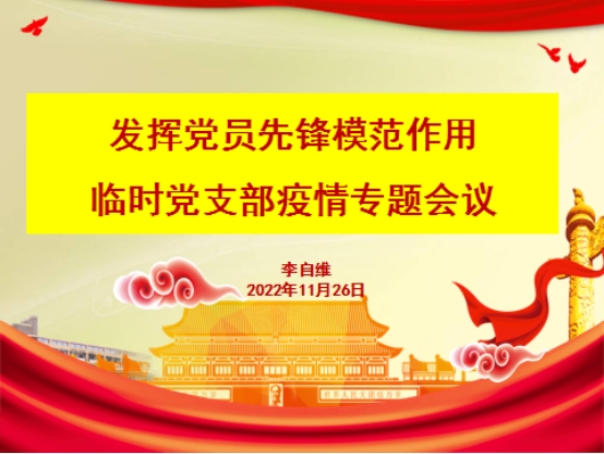 疫情虽险,不畏万难,团结一致,共克时艰。此次会议的召开,为临时党支部做好接下来的防疫工作指明了方向。临时党支部全体成员将遵循会议精神,结合具体情况,以实际行动践行初心使命,彰显新时代共产党员的力量,让党旗在防控疫情第一线高高飘扬!