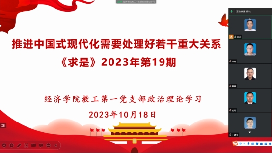 2023年10月18日,太阳成集团tyc122cc教工第一支部集体学习习近平总书记在《求是》发表的重要文章《推进中国式现代化需要处理好若干重大关系》,本次学习活动通过企业微信在线开展。
