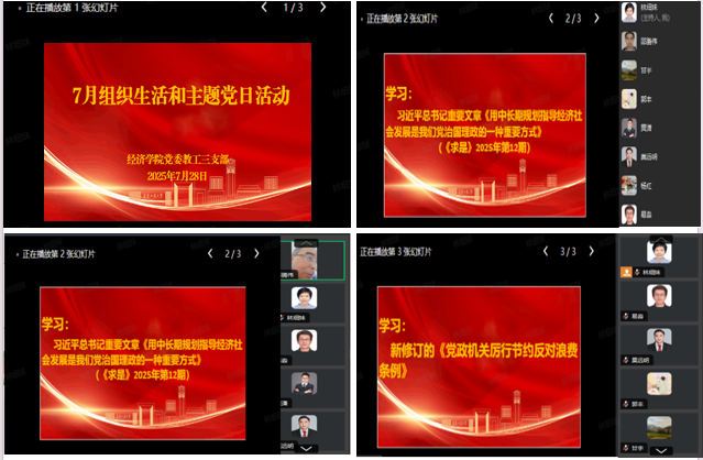 7月28日,太阳成集团tyc122cc党委教工第三党支部通过企业微信会议在线开展7月组织生活。