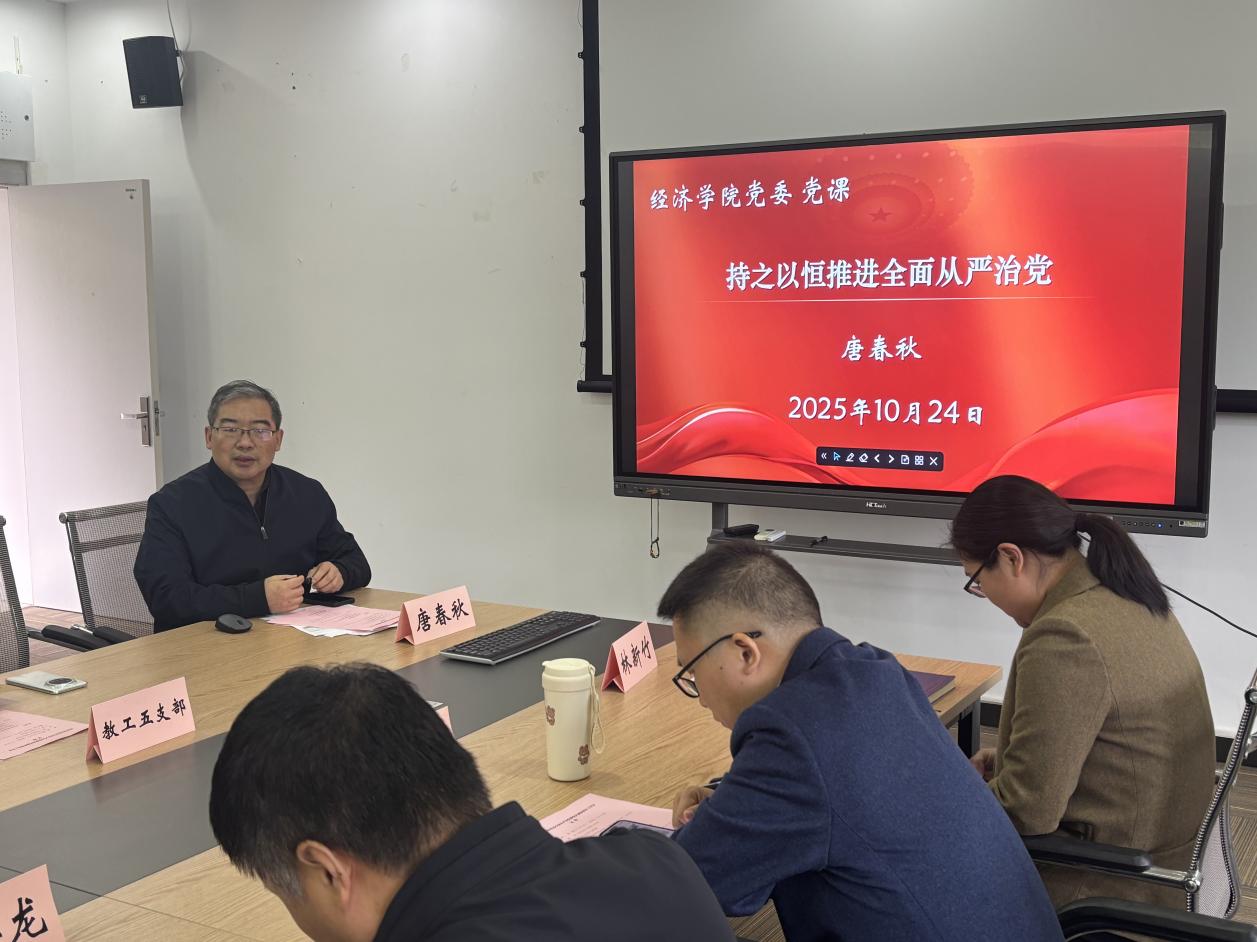10月24日下午,太阳成集团tyc122cc党委书记唐春秋在田家炳书院50406会议室以《持之以恒推进全面从严治党》为题讲授专题党课,党委委员、中层干部、纪委书记、支部书记参加会议。