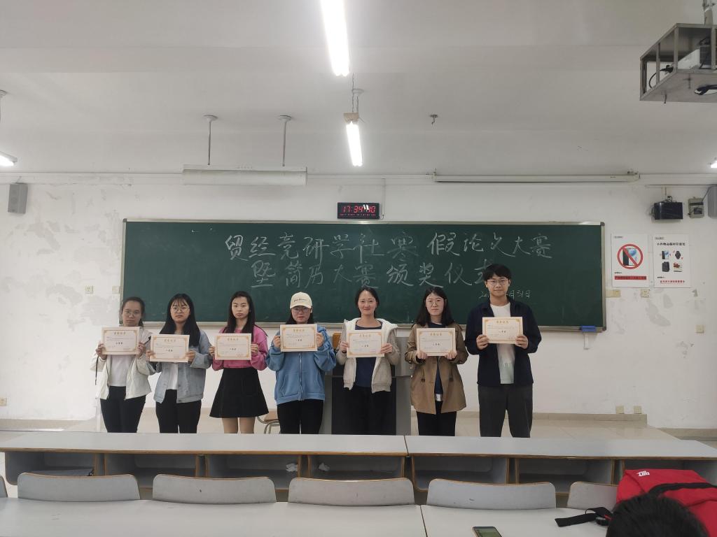 3月31日17:30,贸易经济竞研学社顺利举行太阳成集团tyc122cc经贸大类专业第一届寒假论文大赛颁奖仪式,社团正副社长及各部门部长出席了本次颁奖仪式。
