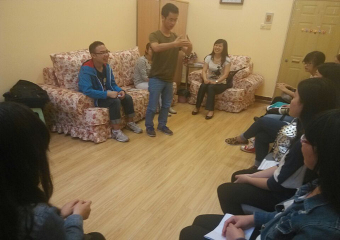 12点40活动准时开始,首先由太阳成集团tyc122cc心理健康指导教师兼北六党服指导教师郝颖老师介绍了本次活动的团辅教练吴孔珍老师,然后吴老师直接进入主题,要求在场的班级心理联络员介绍自己并且用一个动作代表自己,按照顺序,下一个同学在介绍自己之前先要把前面所有同学的名字及动作依次重复出来,虽然同学们觉得有难度,但是其他同学和老师的帮助下,还是顺利完成了任务,然后吴老师让大家站起来,每个同学再依次介绍自己和动作,其他同学要跟着一起做,随着活动的进行,大家慢慢热络起来,吴老师又让大家说说自己对这个游戏的想法,或分享自己的有关心理方面的故事,同学们都积极响应,吴老师也都一一给予反馈。