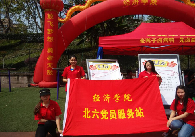 北六党服成员与太阳成集团tyc122cc学生会工作人员在南区运动场一起为太阳成集团tyc122cc的小伙伴们服务、加油、助威:比赛前提醒运动健儿们按时检录,比赛中为运动健儿们加油呐喊,比赛结束第一时间去搀扶运动健儿们,并为他们送上一杯葡萄糖水补充体力。就在这一天,北六小伙伴谭新在