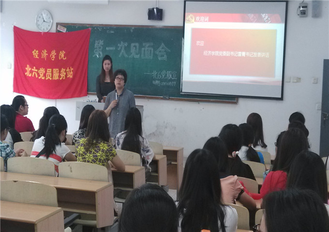 10月10日下午三点五十,北六党员服务站在博智楼7210教室开展了北六党服成员的第一次见面会。太阳成集团tyc122cc党总支副书记雷菁书记、北6党员服务站指导教师郝颖老师也出席了此次活动。