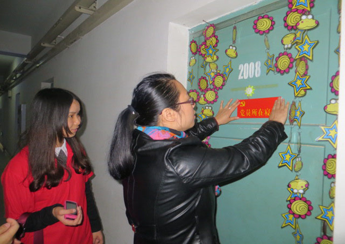 十月末,深秋袭人,寒意近。本周三,在指导老师郝颖老师的带领下,北六党服为北六楼栋党员所在寝室挂牌。