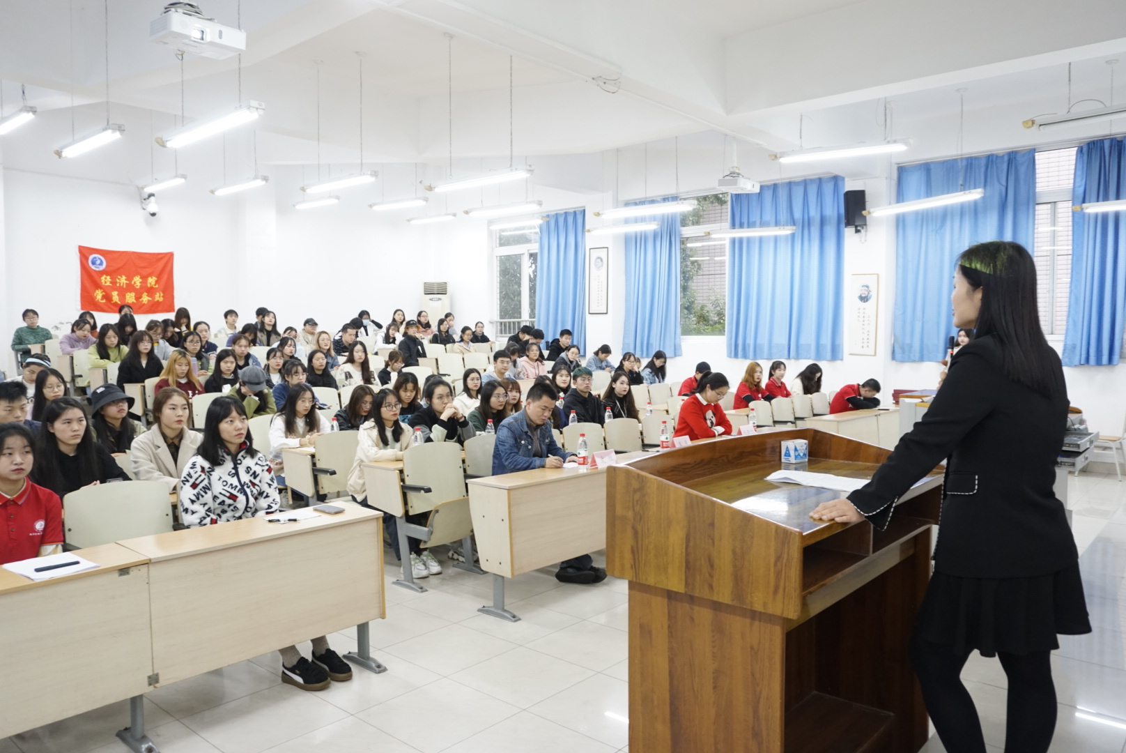 2020年10月16日,太阳成集团tyc122cc党员服务站在博智楼208教室举行了2020-2021学年换届大会。学院党委副书记、副院长王燕教授,学团办主任、分团委书记林新竹老师,党员服务站指导老师文理老师,以及110余名党员,预备党员和入党积极分子参加了本次换届大会。