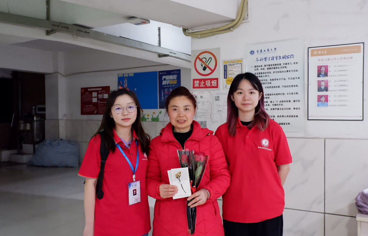 除了在三尺讲台上传道授业的教师,那些心系同学冷暖,关心同学生活、保障楼栋安全的宿管阿姨也同样值得大家尊重和敬爱。3月8日傍晚,经济党服组织站员先后走进了北15,北6、南5楼栋,向仍然在值班室工作的宿管阿姨送去了节日祝福,对阿姨们日复一日的辛勤工作表示感谢并与她们留下了珍贵的合影。