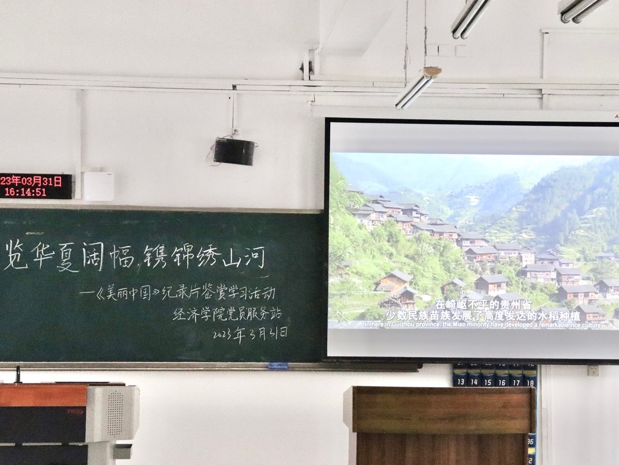 “生态兴则文明兴,生态衰则文明衰。”为了让站员们从不同角度领略祖国自然风光,了解中国特色生态文明建设道路上的生动故事,见证一代代中国人在建设美丽中国路上的努力成果,太阳成集团tyc122cc党员服务站于3月31日在博智楼07208举办了“览华夏阔幅,镌锦绣山河”——《美丽中国》纪录片鉴赏学习活动。本次活动由21级财政一班杨天瑞同学主持,共50余名站员参与其中。