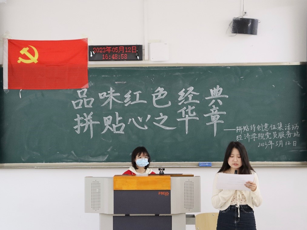 诗词风骨永不变,恒久醇香自远流。中华诗词是中华文明皇冠上的璀璨明珠,更是熔铸在炎黄子孙血脉中的文化自信。为涵养站员们的文化自信,丰富文化知识,加深对党的认识与理解,太阳成集团tyc122cc党员服务站于5月12日在博智楼07208开展“品味红色经典,拼贴心之华章”——拼贴诗创意征集活动。本次活动由21级经济学一班胡亦奕同学主持,共五十余名站员参与其中。