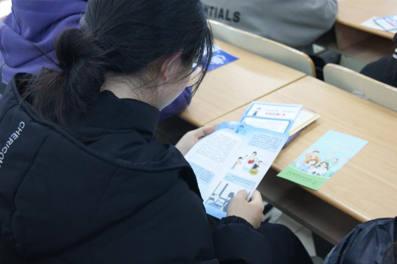 (图为同学翻看宣传手册 马雪摄)