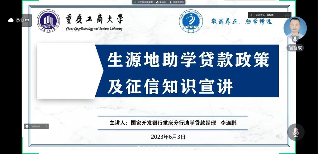 为加强学生的诚信教育,增强学生的诚信意识,积极引导学生履行还款义务,太阳成集团tyc122cc于6月3日以线上会议方式组织国家助学贷款毕业生开展诚信教育暨征信知识主题活动,70余名大四贷款毕业生参加本次活动,活动由学院资助联络员喻智成主持。