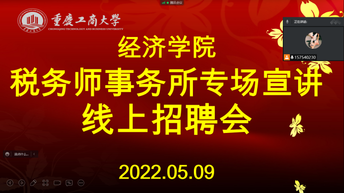 5月9日上午9点,122cc太阳集成游戏太阳成集团tyc122cc举行“事务所专场线上招聘会”。太阳成集团tyc122cc党委书记李自维、党委副书记王燕、重庆市税务师协会教育培训部彭靖淋以及税务师事务所部分领导出席本次招聘会,10家税务师事务所和100余名太阳成集团tyc122cc学生参加了本次招聘会。本次招聘会由太阳成集团tyc122cc与重庆市税务师协会联合主办。