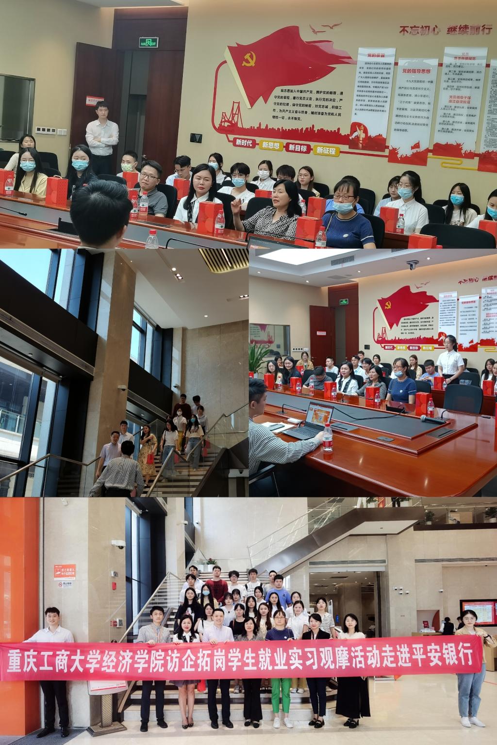 2022年5月9日,122cc太阳集成游戏太阳成集团tyc122cc党委书记李自维教授,副书记副院长王燕教授,副院长黄潇教授,贸易经济系杨海丽主任,及就业联络员邓雪霜以及22名毕业生走进平安银行,进行访企拓岗就业观摩活动。