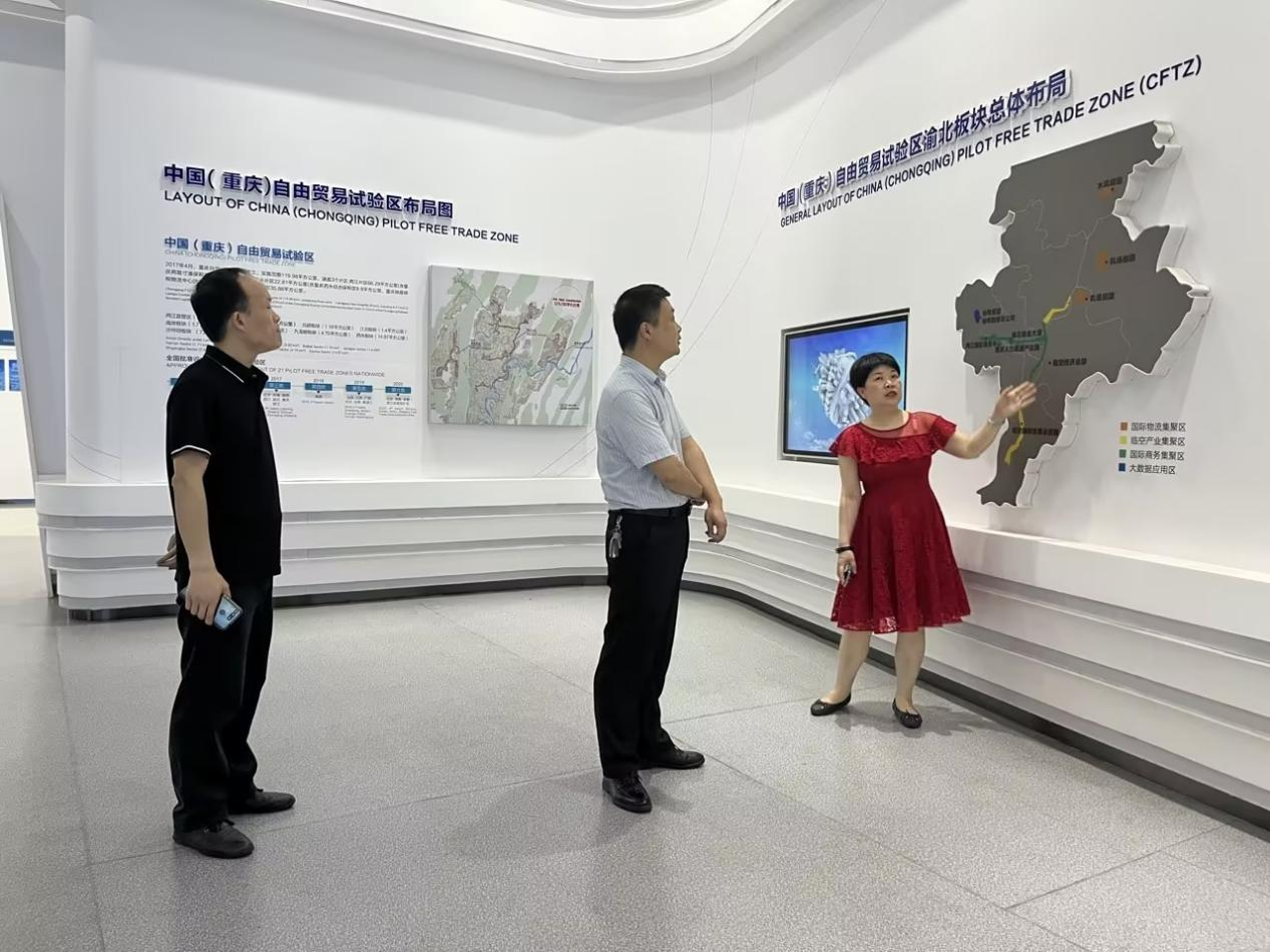 白海龙副书记一行实地参观了内陆开放空中门户展示厅、人才服务中心、外商投资服务中心、一站式服务平台、数贸职业技能培训学校后,双方围绕共同合作的“教育部高校学生司第二期供需对接就业育人项目”后续如何开展具体工作进行了深度交流并达成了高度共识。会上,白海龙副书记代表学院对重庆临空国际贸易示范园的热情接待表示感谢,他指出我院与重庆临空国际贸易孵化基地在学生就业实习方面合作空间大、供需双方专业对口,此次交流座谈增进了彼此的合作信心,将继续同园区一起加强校企合作和人才交流,结合学生的就业现状和用人单位需求不断深化产教融合、引导学生认识到技能培训的重要性,积极拓宽就业合作渠道、挖掘更多的就业岗位资源,全力促进毕业生高质量就业。与会的用人单位代表也分别发言表示愿意来我院选用毕业生,提供就业实习岗位。