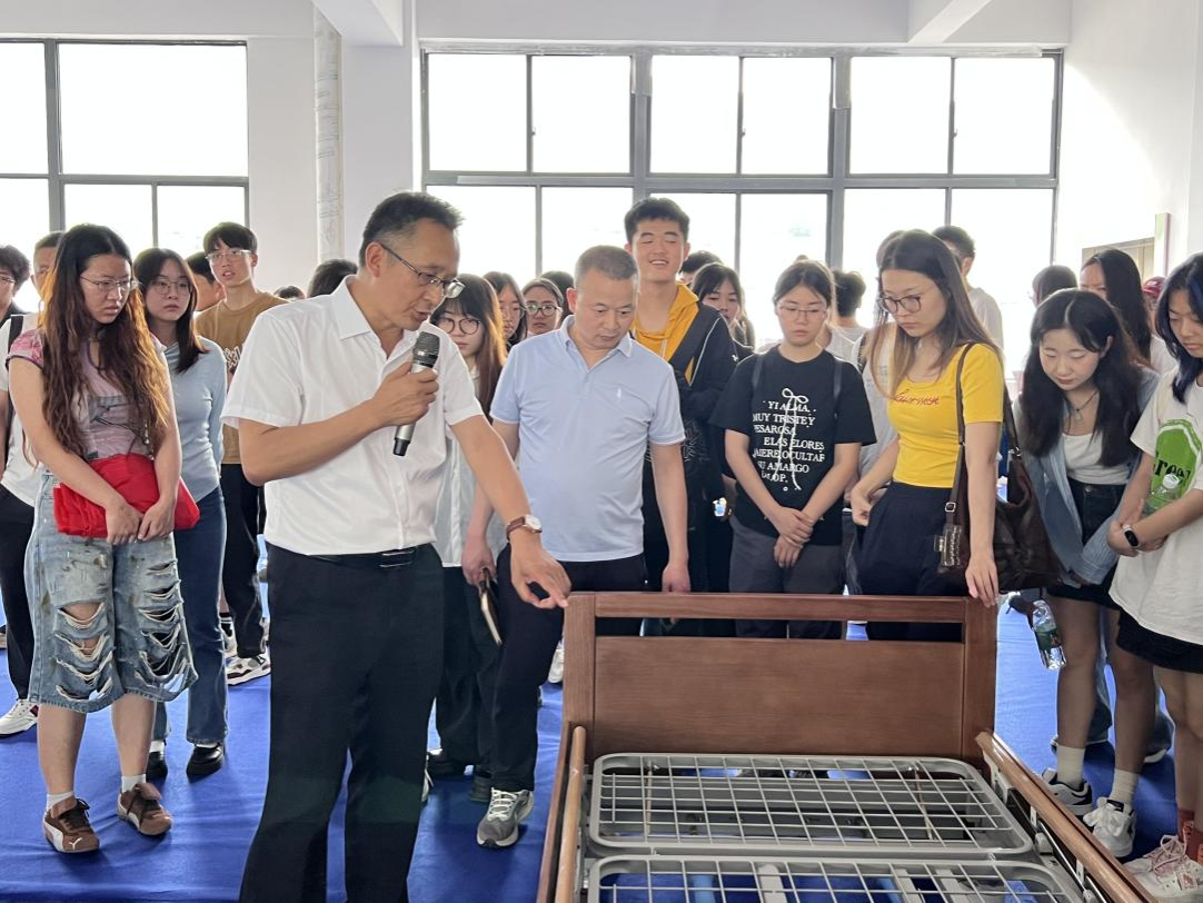 活动第一站,重庆顺美吉医疗器械有限公司展厅内,董事长陈权辉向参访师生展示企业自主研发的智能护理床系列产品。这家拥有多项专利的高新技术企业,其产品远销英国、欧盟、澳洲、美国和中东等国家和地区,为学生上演了“中国智造”的生动一课。