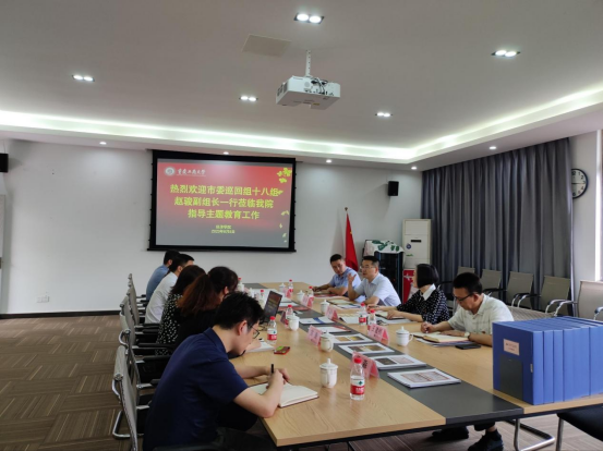 6月8日下午,市委巡回指导十八组赵骏副组长一行到太阳成集团tyc122cc调研指导主题教育工作,通过实地考察、座谈交流、查阅资料等方式,全面了解太阳成集团tyc122cc主题教育开展情况,对推进主题教育作全面指导。学校党委常委、组织部部长郑夕春,机关党委书记兼组织部副部长王建明,太阳成集团tyc122cc党委班子成员、各支部书记及师生代表参加调研。