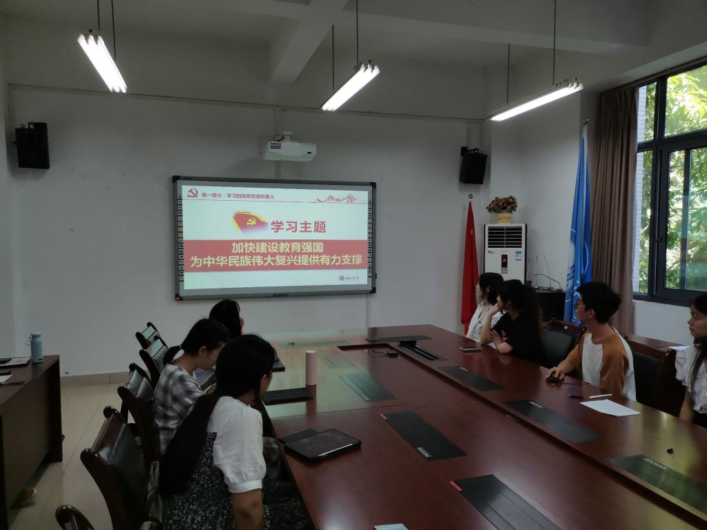 李昂同志分享习近平在中共中央政治局第五次集体学习时的重要讲话精神。会议中强调,要坚持和加强党对教育工作的全面领导,不断完善党委统一领导、党政齐抓共管、部门各负其责的教育领导体制;各级党委和政府要始终坚持教育优先发展,在组织领导、发展规划、资源保障、经费投入上加大力度;学校、家庭、社会要紧密合作、同向发力,积极投身教育强国实践,共同办好教育强国事业。