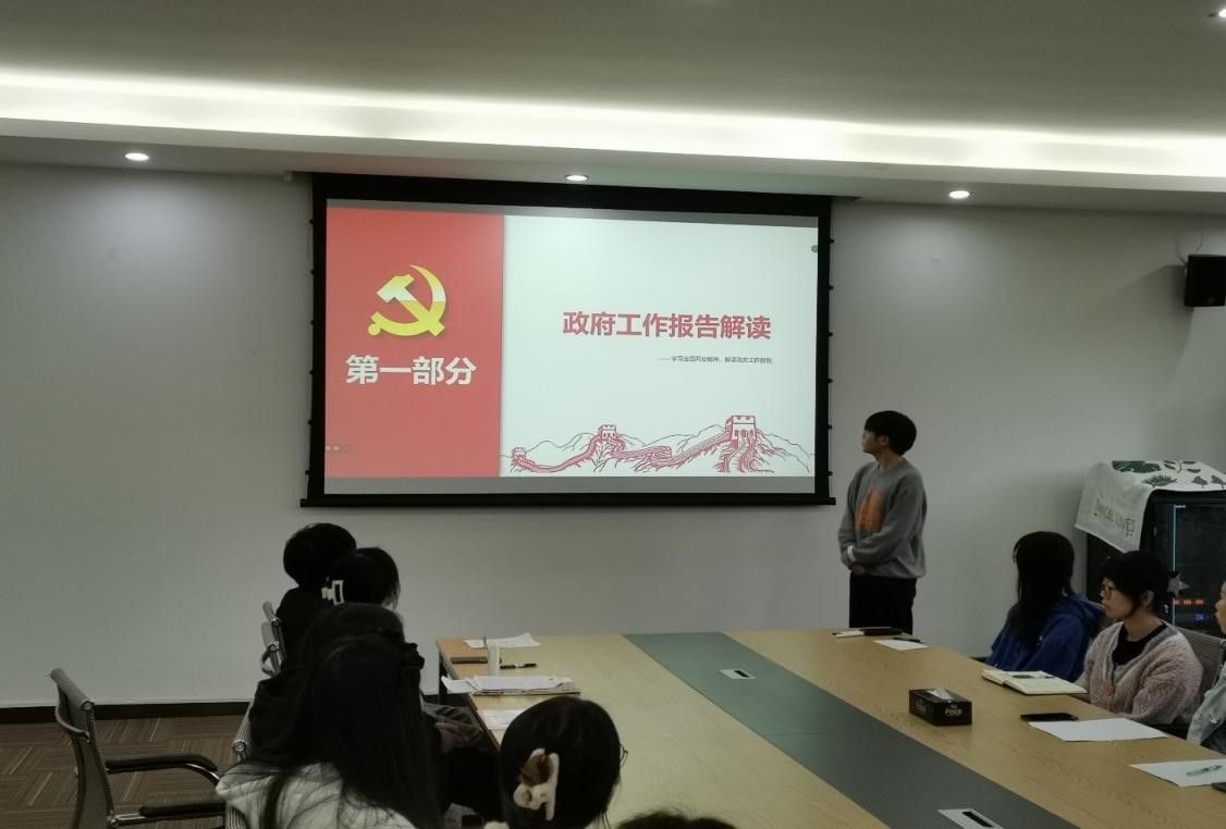会议正式开始,首先,进行会议第一项议程,由主持人介绍组织生活主题,本次组织生活以“不忘初心,笃行不怠,行稳致远”为主题。其次,党员郑心月围绕“习近平:时刻保持解决大党独有难题的清醒和坚定,把党的伟大自我革命进行到底”进行学习分享,本次分享让各位党员同志深刻认识到“治国必先治党,党兴才能国强”这一理念的正确性。紧接着,党员蒋馥声从财税指标的角度对政府工作报告进行了深入的解读与领学,采用提问互动的方式,加深大家的学习成果。随后,党员张娜针对“习近平主持二十届中共中央政治局第十二次集体学习”进行展开交流,她指出,我国能源发展任重道远,通过本次学习,各位党员同志深刻认识到,作为青年党员,应该努力走在科技创新的最前沿,深度了解并参与国际能源治理变革。学习分享结束后,支部书记文理就本次专题组织生活总结发言,充分肯定了本次组织生活的重要意义,希望每一位党员同志都能平稳的走好当下的每一步路,重视自己的每一个选择。