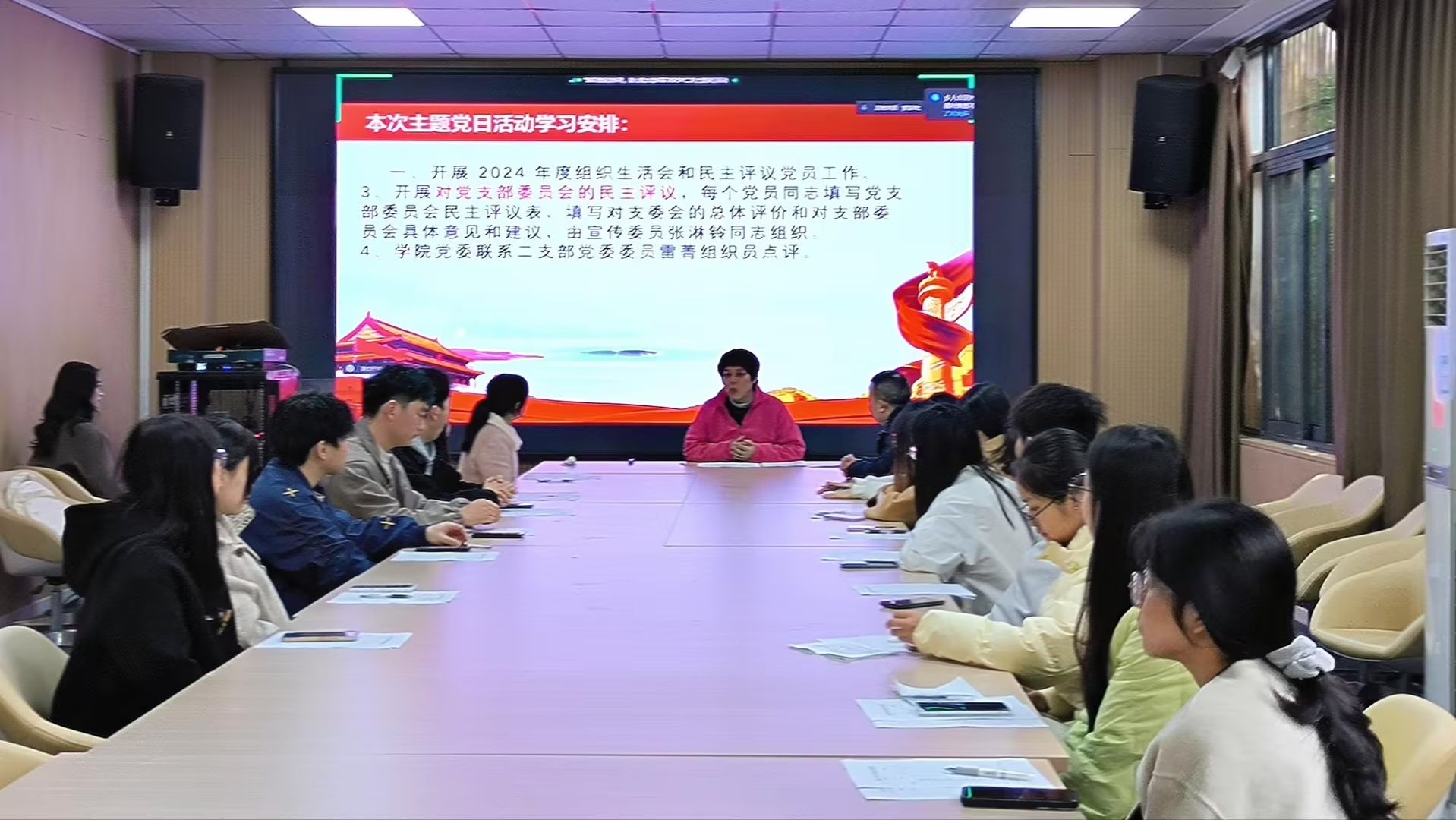 此外,支部还集中收看了《榜样9》专题节目。该节目通过展示优秀共产党员的先进事迹,激励广大党员学习榜样精神,争做时代先锋。观看结束后,党员代表交流了心得体会,学院党委联系二支部的党委委员雷菁组织员对本次活动进行了点评。她充分肯定了支部的工作成果,并希望全体党员能够继续发扬优良传统,勇于担当,积极作为,为学院的发展贡献自己的力量。