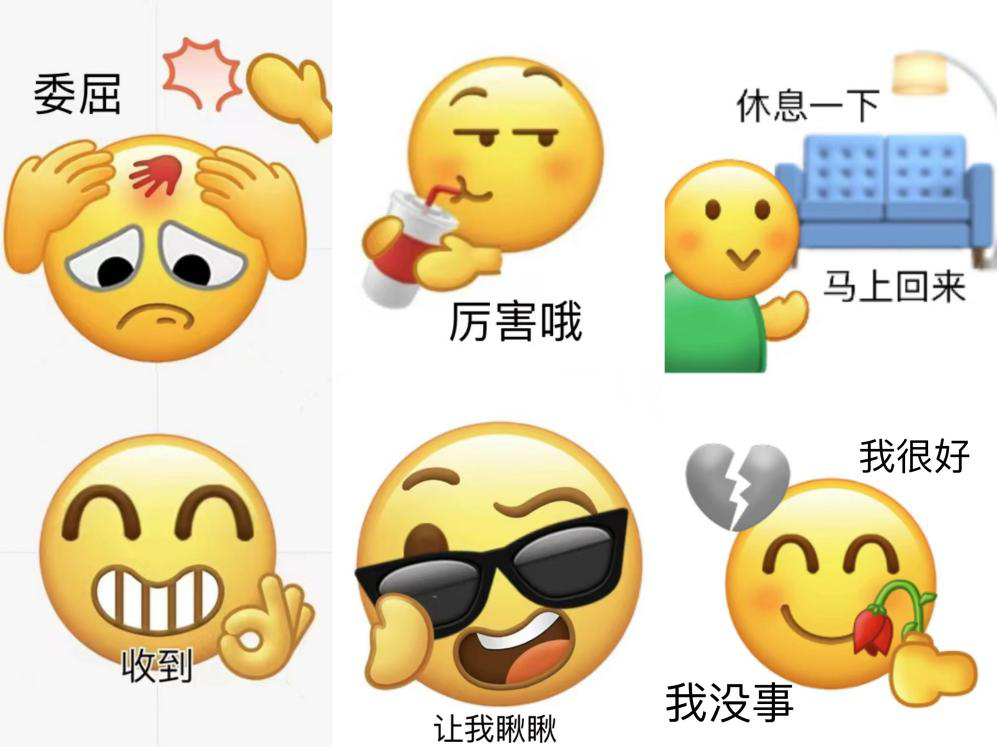 2022级汉文一班的王玲娜同学以生活中的各种情绪,巧妙地将各种emoji表情做成表情包,可爱又简单。