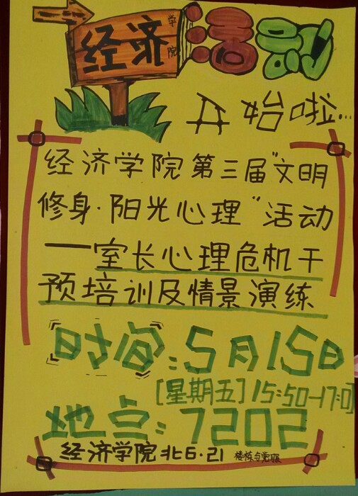 122cc太阳集成游戏太阳成集团tyc122cc第三届“文明修身,阳光心理”系列活动启动仪式暨珍爱生命、助人自助——寝室室长心理危机干预培训及情景演练”成功举行。该系列活动包括活动启动仪式暨珍爱生命、助人自助——寝室室长心理危机干预培训及情景演练”、“自我成长”心理团体辅导、“我爱我——给心理一片晴空”心理健康知识竞赛、“心理成长从中获”心理电影展播等四项内容,其中活动的第一项为最重要的内容部分,意在通过对寝室室长的培训,及时发现身边同学的心理问题以尽快采取安慰和补救措施,避免极端事件的发生,保证大学生心理健康,阳光学习生活。