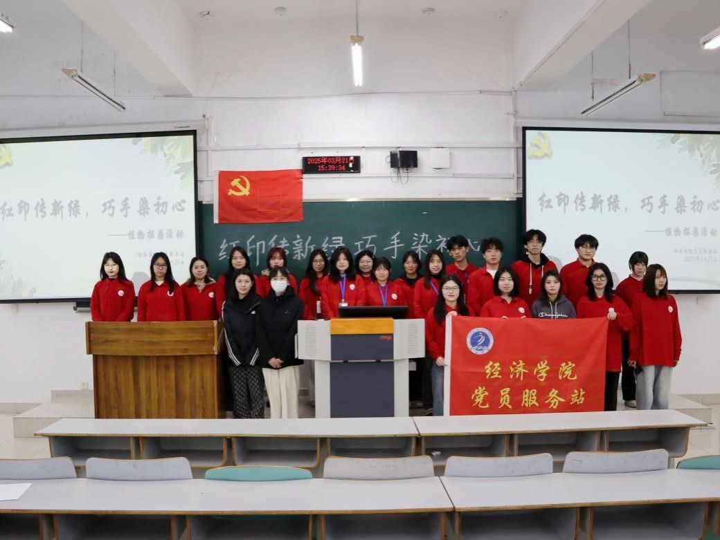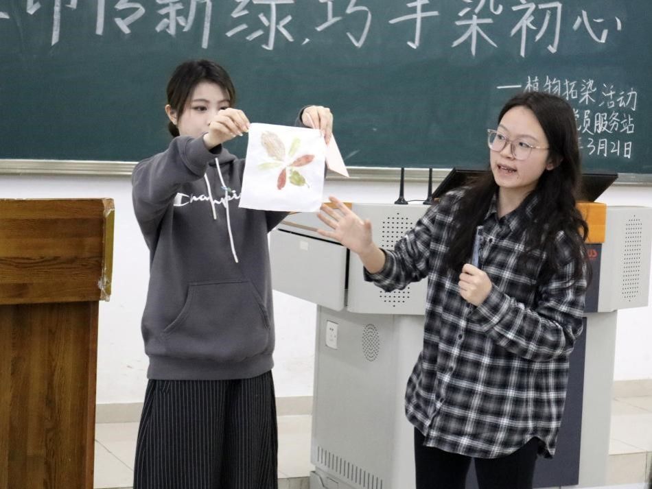 春分时节,校园满溢春的芬芳,处处洋溢着勃勃生机。为引领同学们探寻春日校园之美,体悟生态文明真谛,传承非遗拓染技艺,太阳成集团tyc122cc党员服务站精心筹备,于3月21日在博智楼07408开展“红印传新绿,巧手染初心”植物拓染活动。本次活动共吸引60余名站员参加,由2023级经济学二班伍韬媛同学主持。