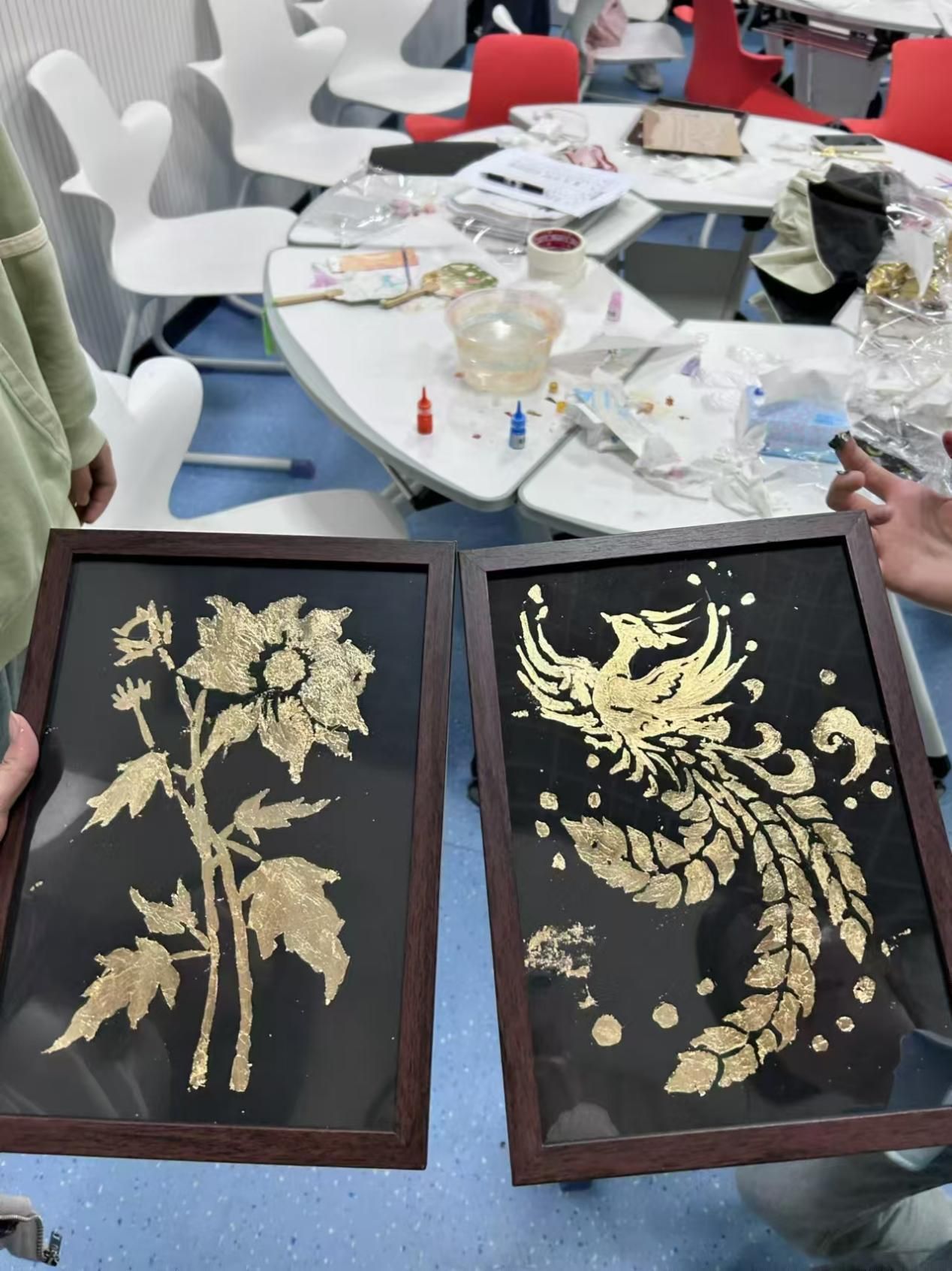 活动伊始,主持人简要介绍了各项手工活动的特点和制作技巧,并鼓励同学们充分发挥想象力和创新精神、大胆创作。在金箔贴画制作区,同学们小心翼翼地将金箔裁剪、粘贴,巧妙地组合成各种精美的图案,从传统的花鸟鱼虫到现代的抽象艺术,每一幅作品都闪耀着独特的光芒,金色的箔片在阳光下闪耀着独特的光芒,仿佛赋予了画作生命,让大家领略到了金箔艺术的魅力。