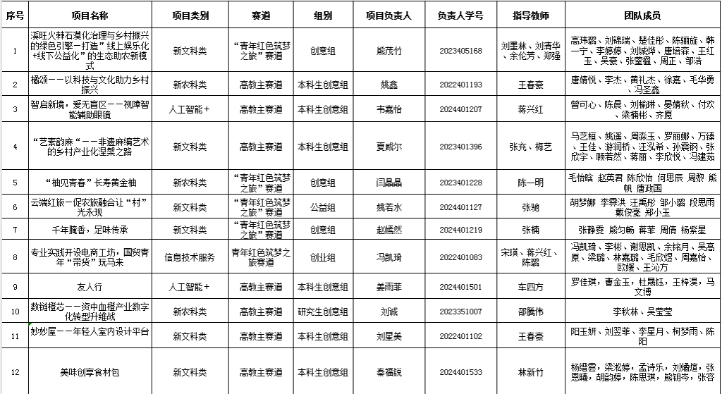 本次大赛自4月启动以来,吸引了全院101个创新项目报名,赛事历经项目征集、导师指导、初赛筛选等环节。学院邀请的评委从创新维度、商业维度、社会价值维度等多个方面进行了严格评审,评审出一等奖12项、二等奖38项、三等奖61项,获奖项目覆盖人工智能、乡村振兴、绿色经济等领域,最终推荐《溪旺火棘石漠化治理与乡村振兴的绿色引擎—打造"线上娱乐化+线下公益化”的生态助农新模式》《智启新境,爱无盲区——视障智能辅助眼镜》等12个项目角逐校赛。